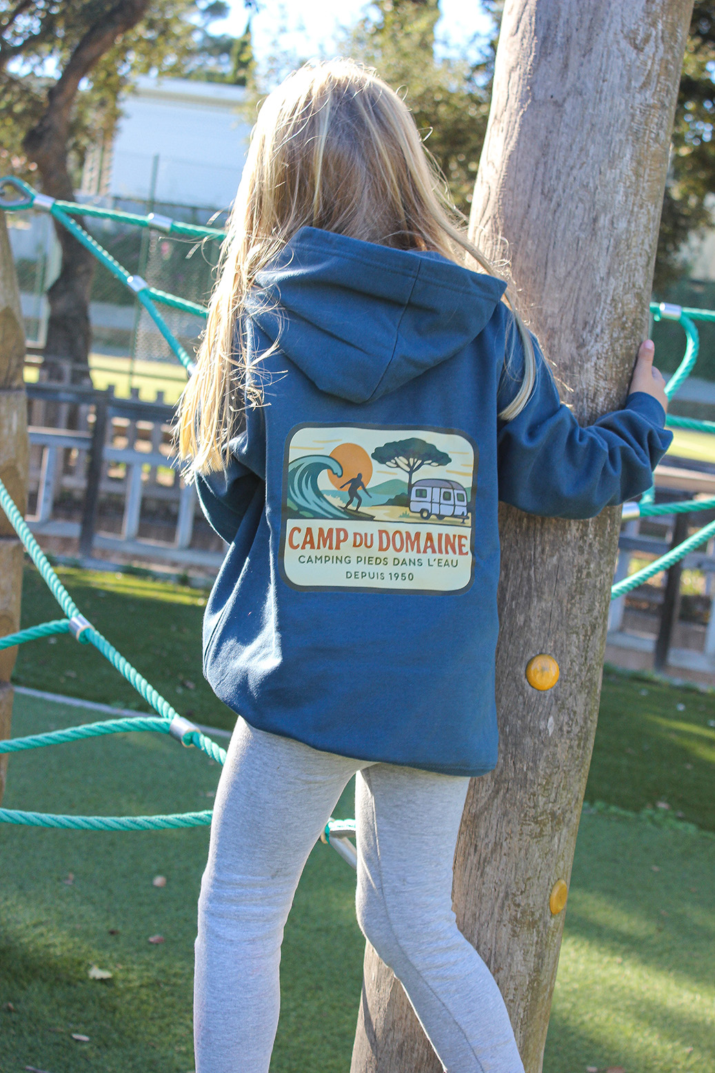 Affrontez les journées fraîches avec style ! Notre sweat à capuche bleu pour enfants est le compagnon idéal pour les aventuriers de 3 à 12 ans. Conçu pour allier confort, chaleur et liberté de mouvement, il accompagnera vos petits dans toutes leurs activités, du matin au soir. 🌟 On adore : – Une matière douce et résistante qui tient bien au lavage – Une coupe confortable adaptée à tous les âges – Une capuche bien enveloppante et une poche kangourou pratique pour les mains ou les petits trésors – Un design moderne avec le design du Camp du Domaine pour un look cool et décontracté Disponible en plusieurs tailles (de 3 à 12 ans) et dans des couleurs éclatantes, ce sweat est un indispensable pour les vacances, les week-ends ou les journées d’école. Un must-have pour petits campeurs stylés !