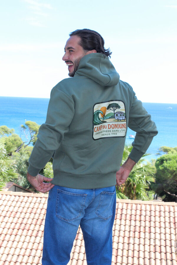 Adoptez le sweat officiel du Camp du Domaine, parfait pour les soirées d’été ou les promenades en bord de mer. Confortable et résistant, ce pull unisexe est fabriqué dans un tissu épais (440 g/m²) mêlant coton doux et polyester recyclé. Sa coupe ample et sa capuche doublée sans cordon offrent un style décontracté et moderne. La poche intérieure pour téléphone ajoute une touche pratique au quotidien. Avec sa couleur kaki naturelle et son intérieur molletonné chaud, ce hoodie est l’allié idéal pour les températures hivernales.